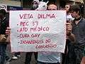 2013 Brezilya protestoları olarak bilinen Brezilya genelinde Devlet Başkanı Dilma Rousseff ve mevcut hükümete karşı,[2] ilk olarak ulaşım ücretlerine yapılan zamma karşı gruplarca başlatılan ardından yolsuzluklar, rüşvet, ekonomik eşitsizlikler ve yüksek vergilere[3] tepki olarak ülke geneline yayılan Brezilyalılar ile Brezilya polisi arasında ara ara çatışmalara sahne olan ayaklanma. Gösterilerin Gezi Parkı protestoları ile zamanlaması ve benzerliği[4] dikkat çekmiş, protestolara LGBT bireyler dahil diğer azınlıklarında dahil olduğu Brezilya halkıda katılmıştır.[5][6]