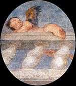 ![]() | Merdiven küpeştesi üstünde putto bebek | 1551 | 115 × 87 cm | Tuvale nakledilmis fresko | Castelfranco Veneto | Katedral | |