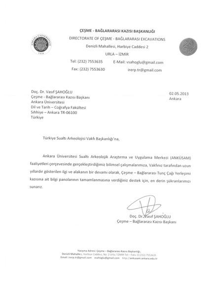 - ↑ Taluğ, Cemal (10 Mayıs 2010) (Türkçe) (Teşekkür mektubu), 22 Ağustos 2016 tarihinde kaynağından arşivlendi, http://web.archive.org/web/20160822075328/http://www.tinaturk.org/faliyetler/AU_Urla_Limantepe_Projesi_3.jpg, erişim tarihi: 22 Ağustos 2016